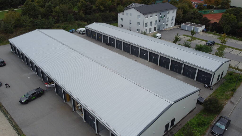 Die Abteile sind in einer freitragenden Halle untergebracht, somit können auch große Lagerflächen von 20 meter Breite und 60 meter Länge ohne störende Stützpfeiler gemietet werden.