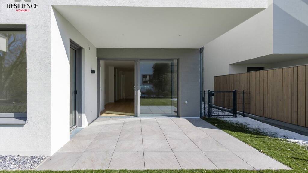 Diese Zweizimmerwohnung im Erdgeschoss bietet auf ca. 74 m2 Wohnfläche modernen Qualitätswohnraum für gehobene Ansprüche. Das Highlight im Innenraum ist der ca. 38 m2 großen Wohn/Ess/Kochbereich, dem großzügigen und offenen Wohnmittelpunkt. Große Fenster erhellen die Wohnräume mit reichlich Tageslicht und sorgen zusammen mit einer Raumhöhe von 2,81 m für eine freundliche Wohnatmosphäre. Der durchdachte Raumplan beinhaltet auch Schlafzimmer, Bad, Abstellraum, Hauswirtschaftsraum und WC. Zur Wohnung gehört eine ca. 15 m2 große Terrasse und ein ca. 102 m2 großer Garten - viel Freiraum für die ganze Familie. Das innovative Wohnkonzept überzeugt auf allen Ebenen mit attraktiver Architektur, perfekter Raumaufteilung und höchstem Wohnkomfort. Der Wohnung ist ein Tiefgaragenstellplatz um € 38.000,- zugeteilt.