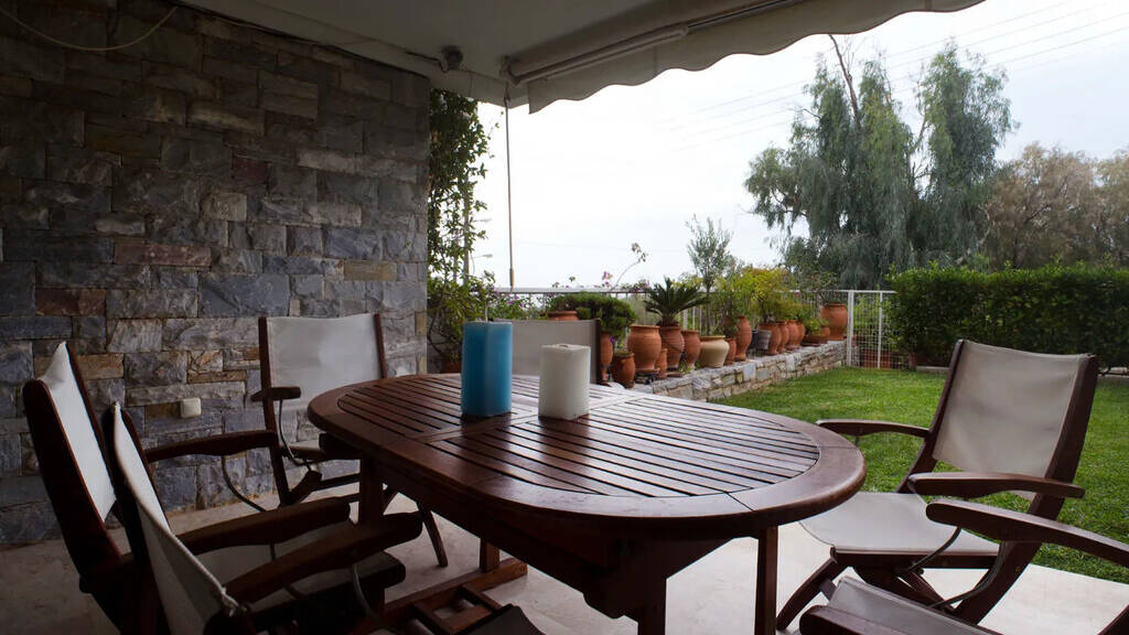 ------------------------------------------------------------------------------Maisonette 125 m² am Meer - SaronidaDiese attraktive Maisonette mit 125 m² Wohnfläche befindet sich nur 100 Meter vom Meer entfernt und bietet eine ideale Kombination aus Ruhe und zentraler Lage.AufteilungErdgeschoss: