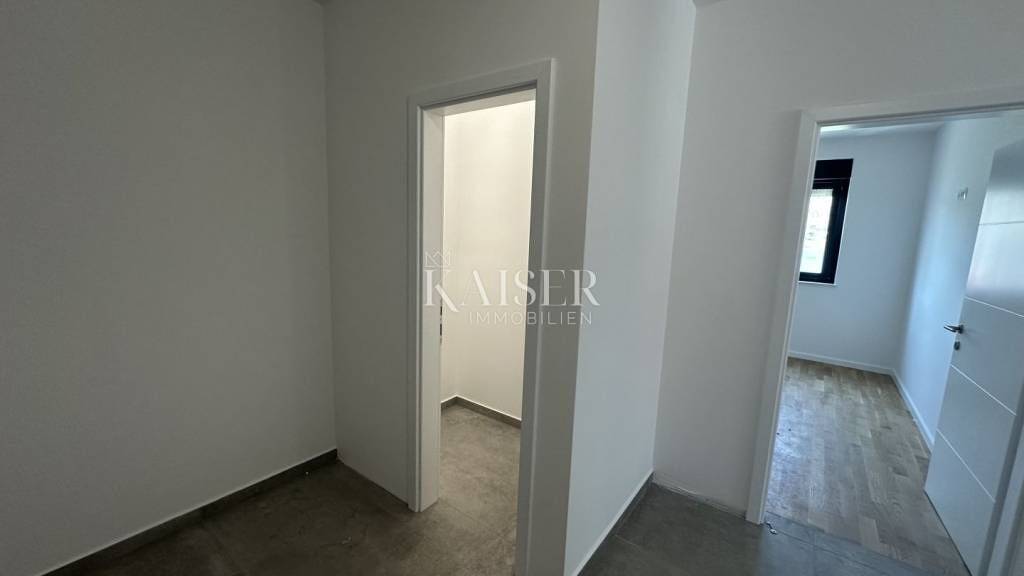 Kaiser Immobilien bietet eine attraktive Zweizimmerwohnung im Erdgeschoss eines neueren, hochwertig gebauten Gebäudes mit nur 9 Wohnungen in bester Lage in der Stadt Pag - nur 70 Meter vom Meer und 5-10 Minuten vom Stadtzentrum und den Sandstränden entfernt. Die Wohnung liegt in einem ruhigen Teil der Stadt und bietet die perfekte Balance zwischen Privatsphäre und Nähe zu allen Annehmlichkeiten. Pag ist bekannt für seine jahrhundertealte Spitzentradition, das klare Meer, das reichhaltige gastronomische Angebot (den berühmten Pager Käse und Lamm), aber auch für seine zunehmende Beliebtheit als Urlaubs- und Familienziel. Die Wohnung befindet sich im Erdgeschoss eines kleinen Wohngebäudes mit geplantem Einzug im Herbst 2025 und besteht aus insgesamt neun Wohnungen, einem Eingangsbereich, zwei Schlafzimmern, einem Badezimmer mit Fußbodenheizung, einem Hauswirtschaftsraum, einem geräumigen Wohnzimmer, das mit der Küche und dem Esszimmer verbunden ist, und einer überdachten Terrasse, die zu einem 75 m² großen privaten Garten führt, der sich perfekt zum Entspannen, Essen im Freien oder als sicherer Raum für Kinder eignet. Das Gebäude wurde mit Schwerpunkt auf Qualität gebaut. Die Wohnung ist mit dreischichtigen PVC-Fenstern in Anthrazit mit eingebauten elektrischen Rollläden ausgestattet, die eine gute Wärme- und Schalldämmung sowie ein zusätzliches Maß an Komfort und Sicherheit gewährleisten. Jedes Zimmer verfügt über eine eigene Klimaanlage, die eine individuelle Temperaturregelung und hohe Energieeffizienz ermöglicht. Das Badezimmer ist mit Fußbodenheizung ausgestattet, und ein Kamin durch die Wohnung führt, sodass je nach Wunsch des zukünftigen Eigentümers ein Ofen oder Kamin installiert werden kann. Zur Wohnung gehört ein ausgewiesener Parkplatz mit der Möglichkeit, eine Ladestation für Elektrofahrzeuge zu installieren, was den Wert und die Funktionalität der Immobilie weiter steigert. Der Grundriss der Wohnung mit den Flächen befindet sich unter den Bildern. Die Stadt Pag bietet alles, was Sie für ein komfortables Leben und einen erholsamen Urlaub benötigen: Restaurants, Geschäfte, kulturelles Erbe, Strandpromenaden und die saubere Adria. Die Wohnung befindet sich in einer attraktiven und begehrten Lage, was sie zu einer hervorragenden Investition macht. Die Maklerprovision für den Käufer beträgt 3% zzgl. MwSt. und wird beim Kauf der Immobilie nach Abschluss des ersten Rechtsgeschäfts fällig. Kontaktieren Sie uns vertrauensvoll für weitere Informationen und um einen Besichtigungstermin zu vereinbaren. Telefon: +385997031459 E-Mail: vedran@kaiser-immobilien.hr