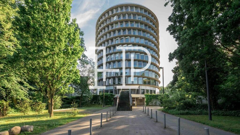 Das architektonisch markante Bürogebäude wurde vom renommierten Architekten Hadi Teherani entworfen und überzeugt durch seine charakteristische, runde Formensprache. Die hochwertige Glas-Stahl-Fassade verleiht dem Objekt einen hohen Wiedererkennungswert und eine repräsentative Außenwirkung. Erschlossen wird das Gebäude über eine von Bäumen gesäumte Zuwegung zu den barrierefreien Aufzügen. Im Inneren sorgen bodentiefe, umlaufende Fenster auf allen Ebenen für eine hervorragende Belichtung und helle, moderne Büroflächen mit angenehmer Arbeitsatmosphäre.