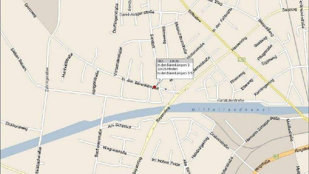 Die Straße "In den Bärenkämpen" liegt am nördlichen Rand des Stadtteils von Minden und grenzt direkt an den grünen Gürtel der Stadt. Der nahegelegene Mittellandkanal lädt zu Spaziergängen und Freizeitaktivitäten im Grünen ein. Die Lage bietet eine hervorragende Infrastruktur: . Eine Grundschule befindet sich nur etwa 50 Meter entfernt. . Eine Realschule ist ca. 200 Meter entfernt. . Ein Kindergarten ist in etwa 100 Metern erreichbar. . Das Melittabad, ein beliebtes Hallen- und Freibad, liegt ca. 200 Meter entfernt. . Ein Supermarkt ist in etwa 300 Metern erreichbar. . Die Mindener Innenstadt ist ca. 3,5 km entfernt und gut mit dem Bus erreichbar Dank dieser zentralen Lage ist ein Auto nicht zwingend erforderlich.