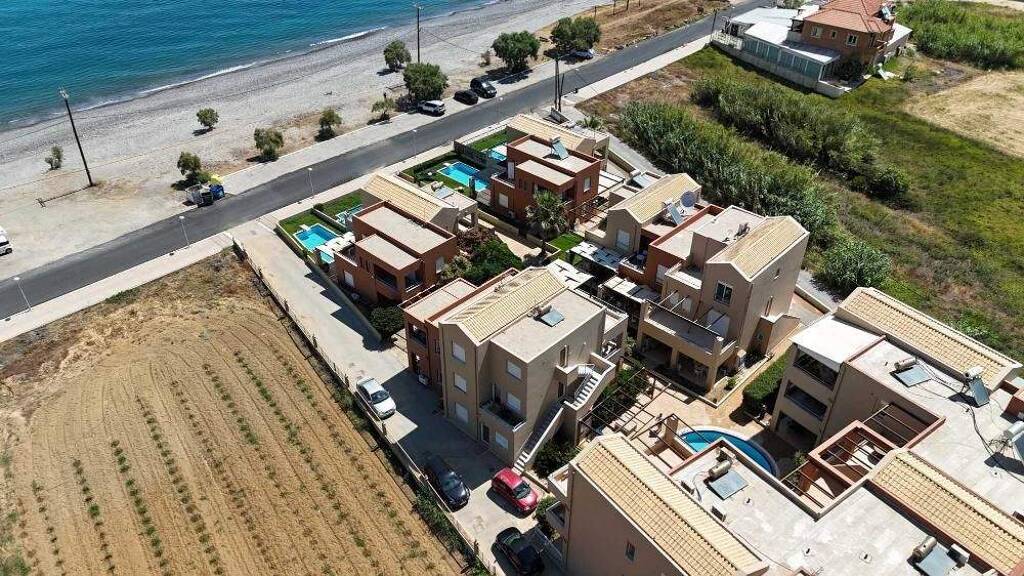 Diese Villa in erster Meereslinie steht in Maleme bei Chania auf Kreta zum Verkauf. Sie ist Teil einer kleinen Wohnanlage mit 24 Wohneinheiten direkt am Strand des Dorfes Maleme in der Region Platanias, nur 17 km westlich von Chania. Die Gesamtfläche beträgt 124 m², erstreckt sich über zwei Etagen und umfasst drei Schlafzimmer und zwei Badezimmer.