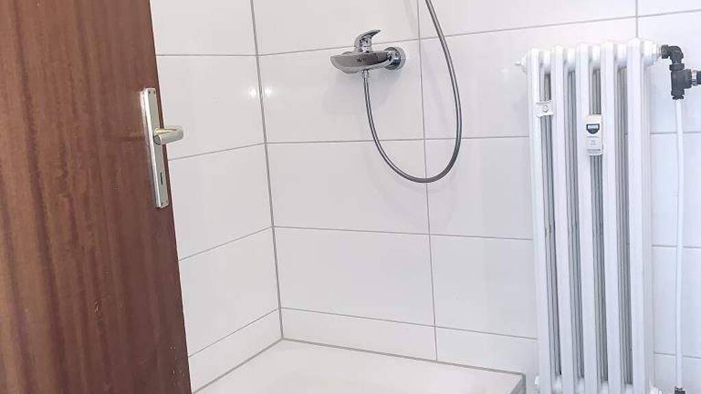 Modernes Duschbad Waschmachinenanschluss im Bad Küchenfliesenspiegel Trotz Dachgeschosslage lediglich Schrägen in der Abstellkammer und im Schlafzimmer Abstellraum Keller Gaszentralheizung Dezentrale Warmwasseraufbereitung (Elektrodurchlauferhitzer im Bad)