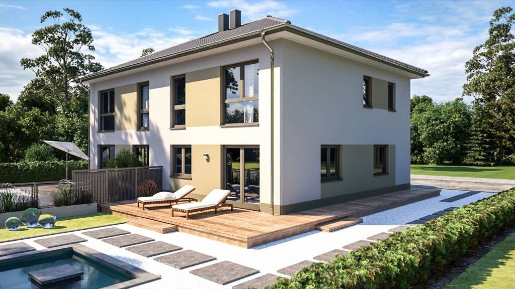 Dieses moderne Doppelhaus bietet Euch die einzigartige Möglichkeit, Tür an Tür mit Euren besten Freunden zu leben, ohne dabei auf die notwendige Privatsphäre verzichten zu müssen. Es ist die ideale Lösung für alle, die Gemeinschaft und Eigenständigkeit gleichermaßen schätzen.