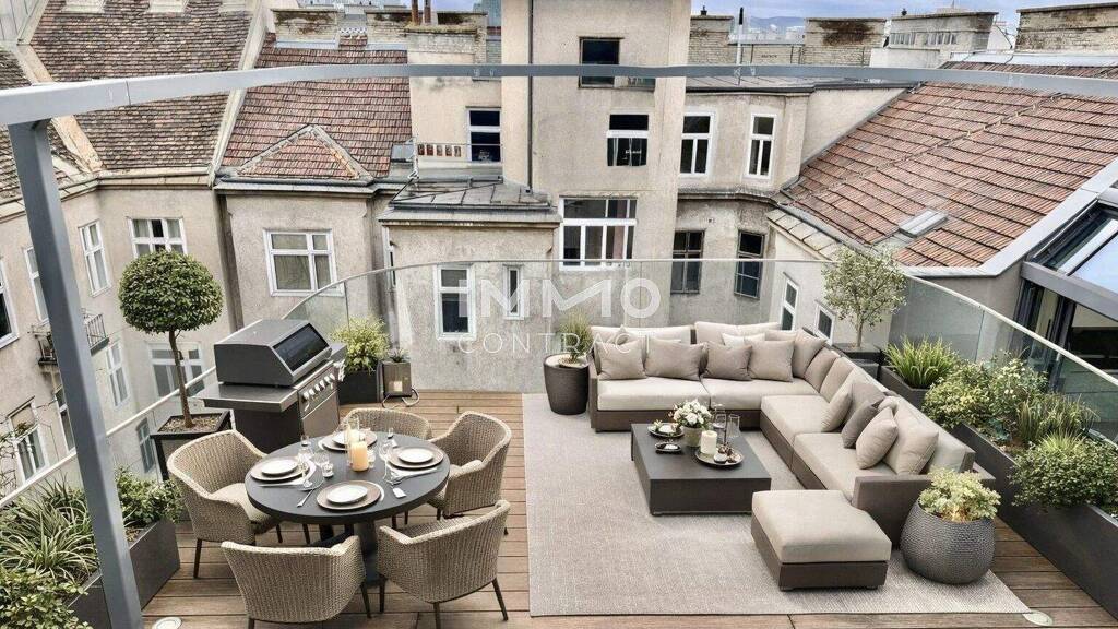 Ein Wohnort, der alles vereint: Urbanes Leben, charmante Märkte, grüne Oasen und die perfekte Verbindung zu Stadt und Welt. Dieser exklusive Dachgeschoßausbau befindet sich mitten im Herzen des 3. Bezirks - an der charmanten Ecke Wassergasse und Geusaugasse. Hier wohnen Sie dort, wo Wien seinen urbanen Puls mit höchster Lebensqualität verbindet. Dieses Penthouse besticht durch eine Ausstattung, die höchsten Wohnansprüchen gerecht wird. Das schlichte, elegante Interior Design zieht sich durch alle Bereiche und zeigt Liebe zum Detail. In den Bädern hat STEININGER Designers mit harmonischen Akzenten ein besonderes Highlight gesetzt. Maßgefertigte Tischlerarbeiten in der Küche sowie ein außenliegender Sonnenschutz runden das exklusive Gesamtbild ab. Für ein perfektes Raumklima sorgen Fußbodenheizung, Klimaanlage und modernste Wärmeschutzverglasung. Großzügige, deckenhohe Fensterfronten öffnen die Räume, lassen sie in natürlichem Licht erstrahlen und schaffen eine offene, einladende Atmosphäre. Von der stilvollen Wohnküche gelangt man direkt auf die Terrassen - ein fließender Übergang zwischen Innen und Außen. Zwei raffinierte Capriofenster verwandeln sich per Handgriff in kleine Balkone und erweitern den Raum um charmante Rückzugsorte.