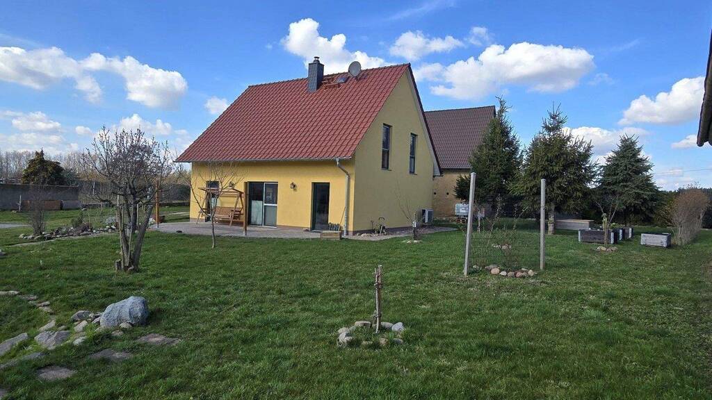 Verkauft wird ein modernes EFH in Massivbauweise. Das Haus befindet sich auf einem großen, komplett eingezäunten Grundstück. Es hat eine offene Wohnküche mit Kamin, drei Schlaf- und zwei Badezimmer, eine grosse Diele mit Abstellraum und einen Hauswirtschaftsraum mit sämtlichen Anschlüssen. Alle Räume sind gefliest und haben Fussbodenheizung. Geheizt oder gekühlt wird über eine Luftwärmepumpe mit Klimasplittgerät. Alle Zimmer haben LAN- bzw. Satellitenanschlüsse. Es liegt ein 100 MB DSL-Anschluss der Telekom an. Auf dem Grundstück befinden sich noch eine Scheune mit Garage und ein Brunnen, Anschlüsse für Walbox, Photovoltaik und Sauna sind geplant und liegen an.