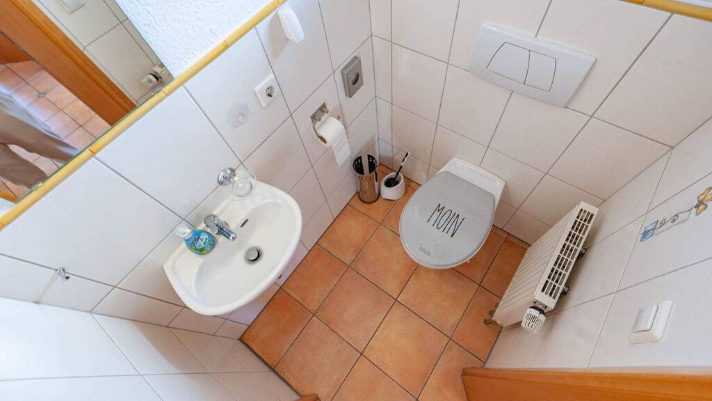 Der Zugang zum Haus erfolgt über das Erdgeschoss. Hinter der Wohnungseingangstüre empfängt Sie ein kleiner Flur mit ausreichend Platz für eine Garderobe; rechter Hand befindet sich das Gäste-WC. Linker Hand gelangen Sie in die Küche, die mit einer Einbauküche ausgestattet ist und kurze Wege im Familienalltag ermöglicht. Von hier aus öffnet sich der Wohn- und Essbereich, der, wie alle Wohn- und Schlafräume, mit hochwertigem Parkettboden versehen ist. Alternativ ist der Wohnbereich auch direkt über das Treppenhaus vom Flur aus erreichbar. Der großzügige Grundriss schafft viel Raum für gemeinsames Wohnen, Spielen und Essen und bietet zudem einen direkten Zugang zur Terrasse mit angrenzendem Garten. Der Anschluss eines Ofens wäre im Wohn- und Essbereich möglich.