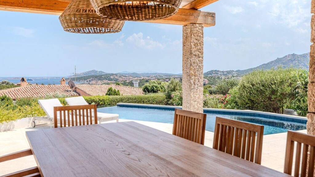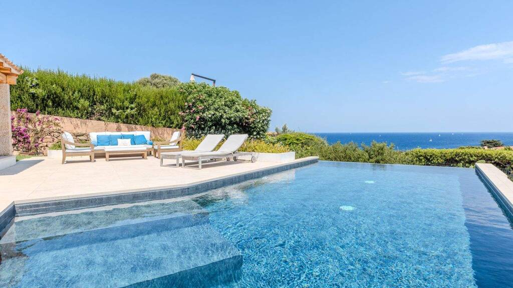 Der sorgfältig angelegte und mit mediterranen Essenzen angereicherte Privatgarten bietet einen atemberaubenden Blick auf das Meer und beherbergt einen herrlichen beheizten Swimmingpool, ebenfalls mit Panoramablick, der zu jeder Jahreszeit genutzt werden kann. Daneben befindet sich eine Sonnenterrasse mit bequemen Sofas, Liegestühlen und einer Lounge, die eine Oase des Wohlbefindens und der Ruhe inmitten einer faszinierenden Naturlandschaft bietet.