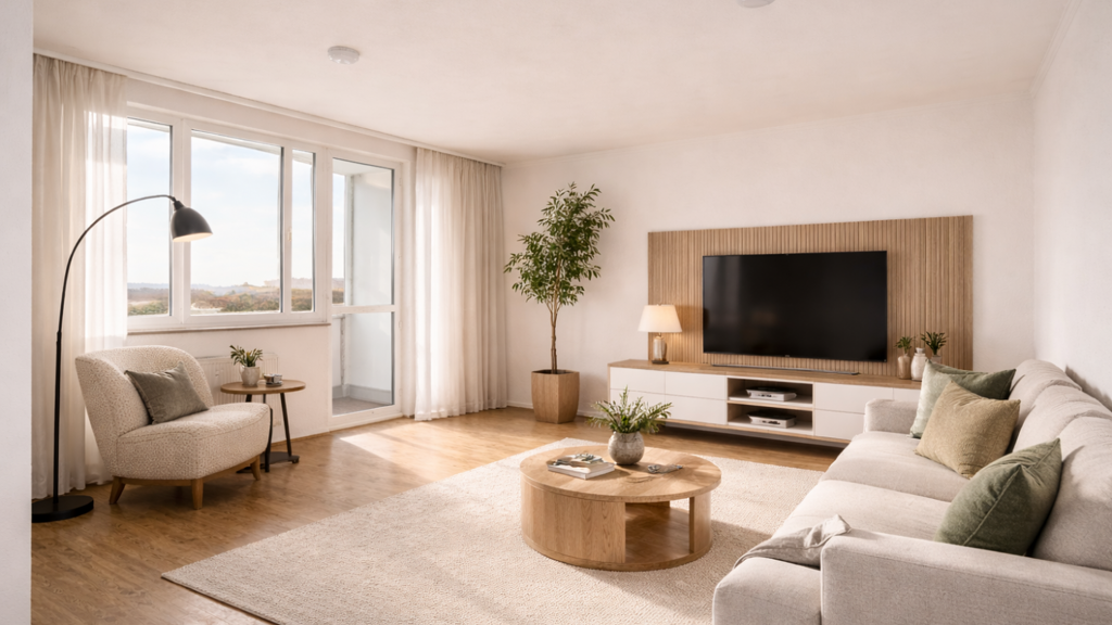 Die Wohnung überzeugt durch ihre durchdachte Raumaufteilung und bietet ausreichend Platz für Familien, Paare mit Platzbedarf oder für Wohnen und Arbeiten unter einem Dach. Drei helle Schlafzimmer eröffnen flexible Nutzungsmöglichkeiten - ob als Kinderzimmer, Büro oder Gästezimmer. Der großzügige Wohn- und Essbereich bildet das Herzstück der Wohnung und schafft mit seinen großen Fensterflächen eine besonders freundliche und einladende Atmosphäre. Die sonnige Ausrichtung sorgt den ganzen Tag über für viel natürliches Licht und ein angenehmes Wohngefühl.