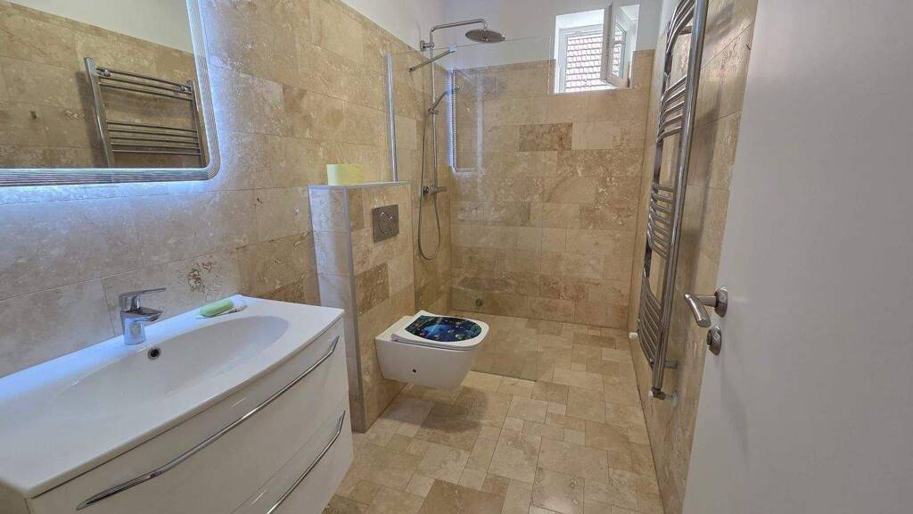 Dieses charmante, in den 1960er Jahren massiv gebaute und 2022 komplett hochwertig sanierte Familienhaus vereint modernen Wohnkomfort mit ruhiger Stadtnähe. Auf einem 323 m2 großen Grundstück und einer Wohnfläche von 100 m2 erwarten Sie großzügige, helle Räume, eine große Terrasse und ein gepflegter Garten. Das Haus bietet einen einladenden Eingangsbereich, ein großes Wohn- und Esszimmer mit offener, maßgefertigter weißer Küche, zwei geräumige Schlafzimmer sowie ein modern ausgestattetes Badezimmer mit WC. Von hier aus gelangt man direkt auf die große Terrasse, die mit spanischen Premiumfliesen belegt ist. Die Immobilie wurde 2022 bis ins kleinste Detail renoviert – von den Strom- und Wasserleitungen über Bodenbeläge, Türen und Fenster bis hin zum neuen Ziegeldach. Massive 60 cm starke Wände sorgen für hervorragende Isolierung. Hochwertige Kunststofffenster mit 2-fach Isolierverglasung, Moskitonetzen, Gasheizung mit Fußbodenheizung in Küche und Bad sowie ein gepflegter Garten mit Rosen, Lavendel und immergrüner Bepflanzung runden das Angebot ab. Ein Stellplatz im Hof ist ebenfalls vorhanden. Das Zentrum von Tapolca ist in nur 2–3 Gehminuten erreichbar – und der Balaton mit seinen schönsten Stränden liegt nur rund 12–13 km entfernt. Tapolca ist eine Stadt mit ca. 16.000 Einwohnern, liegt inmitten einer reizvollen, hügeligen Landschaft nur 15 km vom Nordufer des Balatons entfernt. Thermal- und Freizeitbäder, Märkte und Einkaufsmöglichkeiten befinden sich direkt vor Ort . KEINE PROVISION! Wir sprechen Deutsch und Englisch Anmerkung: Die von uns gemachten Informationen beruhen auf Angaben des Verkäufers bzw. der Verkäuferin. Für die Richtigkeit und Vollständigkeit der Angaben kann keine Gewähr bzw. Haftung übernommen werden. Ein Zwischenverkauf und Irrtümer sind vorbehalten.