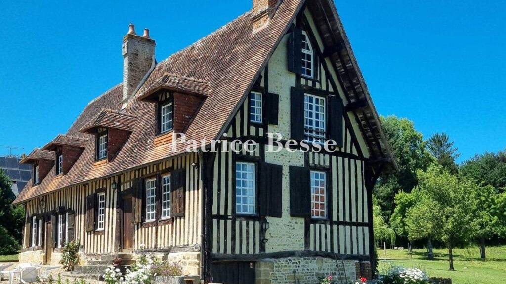 A 16th century farmhouse, 3 carefully restored outbuildings with almost 9 hectares of land planted with apple trees between Lisieux and Pont-l'Evêque.