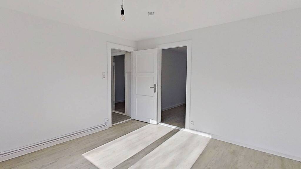 Mittelpunkt der Wohnung ist das helle Wohn- und Esszimmer. Große Fenster bringen viel Tageslicht in den Raum hinein und machen ihn hell und freundlich. Das angrenzende Schlafzimmer des Mietobjekts bieten viel Raum zur freien Entfaltung. Ein schöner Bodenbelag in Holzoptik, der sich mit Ausnahme des Bades auch auf der gesamten restlichen Bodenfläche wiederfindet, sorgt für eine gemütliche Note.