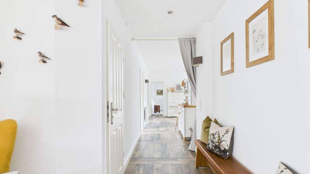 Die Architektur erinnert an ein klassisches norddeutsches Landhaus: zeitlos, charakterstark und mit durchdachter Raumaufteilung. Große Fenster holen Natur und Licht ins Innere und bieten vielfältige Nutzungsmöglichkeiten, ob für Familie, Homeoffice oder kreative Ideen.