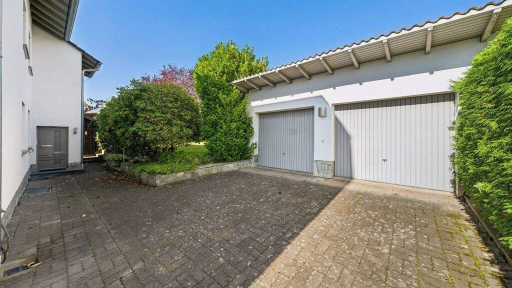 Zum Anwesen gehören eine große Doppelgarage mit weiterem Stauraum im hinteren Bereich.
