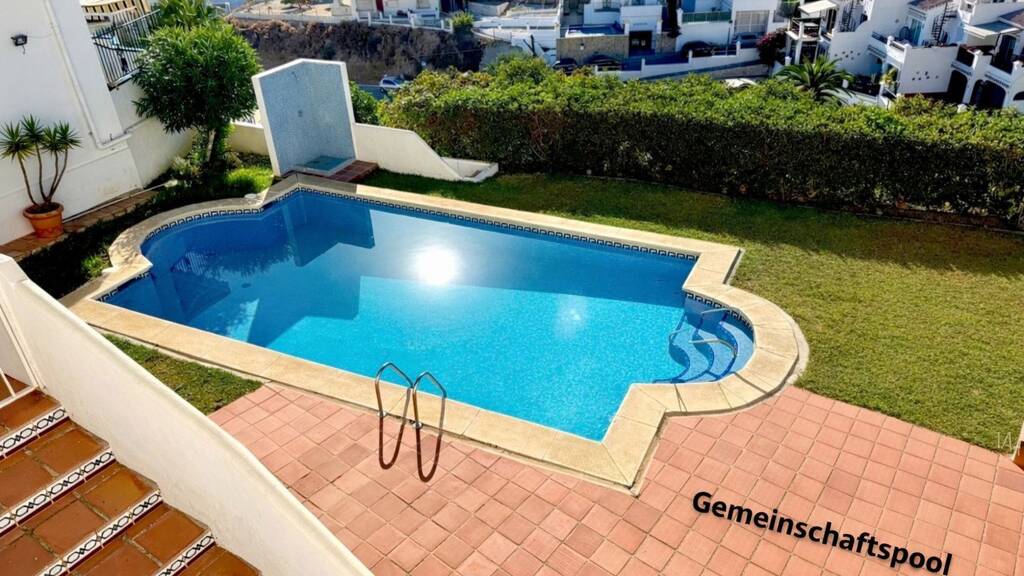 Reihenhaus mit drei Schlafzimmern, zwei Terrassen und herrlichem Ausblick in einer ruhigen Wohnanlage in Nerja, nur wenige Gehminuten vom Strand Burriana entfernt.