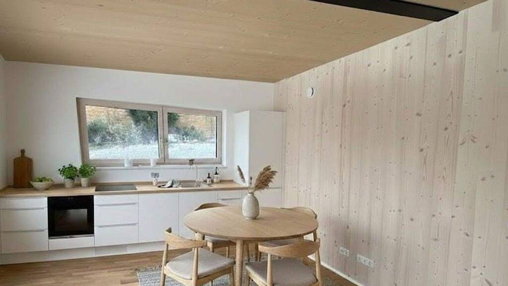 Diese hochwertige 2-Zimmer-Wohnung im Untergeschoss eines neu errichteten Holzhauses überzeugt durch nachhaltige Bauweise und modernes Wohngefühl. Der offen gestaltete Wohnbereich mit direktem Zugang zur Terrasse sorgt für viel Licht und eine angenehme Wohnatmosphäre. Neben einem separaten Schlafzimmer steht ein modernes Bad mit Tageslicht zur Verfügung. Ein besonderes Merkmal sind die sichtbaren Holzwände, die den Räumen einen natürlichen und exklusiven Charakter verleihen. Zum Erhalt der Holzoberflächen dürfen dort keine Gegenstände montiert werden; Haustiere sind nicht vorgesehen.