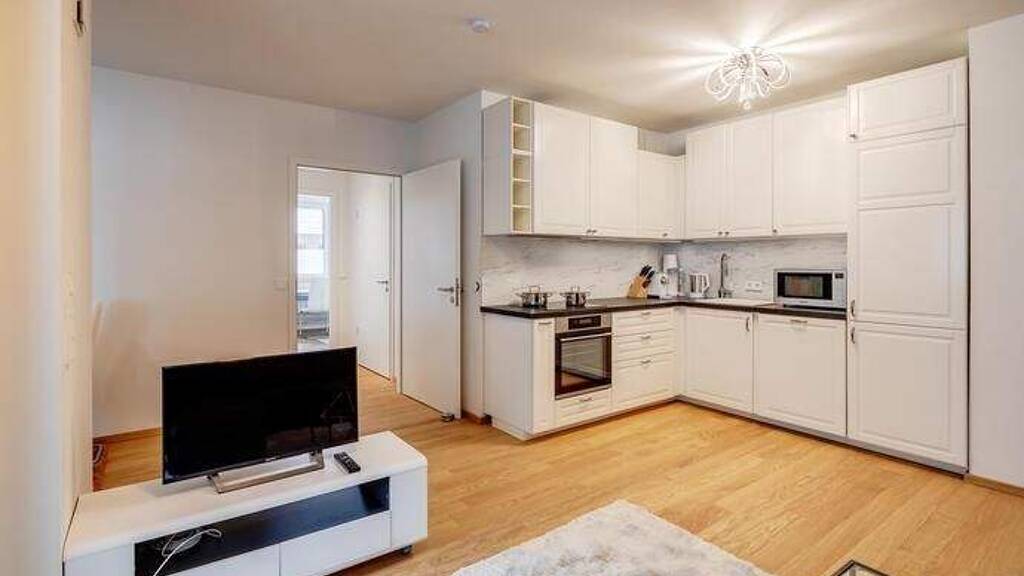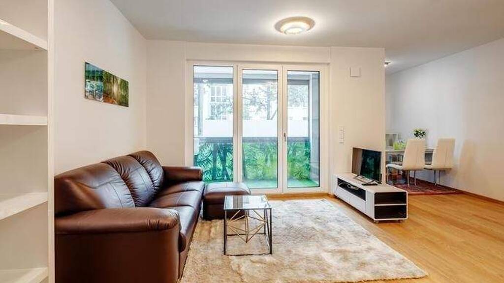 Die Wohnung ist hell und warm, mit Fußbodenheizung, die in jedem Zimmer separat reguliert werden kann. Die Fenster sind mit Dreifachverglasung und elektrischen Rollläden ausgestattet. Das gemütliche Wohnzimmer ist nach Süden ausgerichtet, die zwei Schlafzimmer nach Westen. Zwei moderne Badezimmer bieten Komfort, eines mit Badewanne und Dusche, das andere mit einer Duschkabine. Ein überdachter Parkplatz rundet das Bild ab. Alle Betten verfügen über Latex Matratzen. Das Einkaufszentrum "Das Einstein" liegt in bequemer fußläufiger Entfernung mit Bäcker, Lebensmittelgeschäften, Drogeriemarkt, Elektromarkt (MEDIAMARKT), großem Fitnesscenter (FITNESS FIRST). Auch befinden sich eine Grundschule, eine Mittelschule und eine 24h Tankstelle in unmittelbarer Nähe.