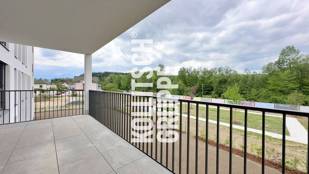 Beim Betreten der Wohnung über den großzügigen Vorraum mit ausreichend Platz für Garderobe und persönliche Gegenstände eröffnet sich ein Raumkonzept, das Funktionalität und Komfort vereint. Das Badezimmer beeindruckt mit einer eleganten verglasten Dusche und einem praktischen Waschmaschinenanschluss. Eine separate Toilette befindet sich in unmittelbarer Nähe. Das helle Wohnzimmer, verbunden mit einer stilvollen Einbauküche, und das angrenzende Schlafzimmer führen direkt zu dem großzügigen Westbalkon mit einer Fläche von ca. 17,81 m² und einem herrlichen Blick auf den Park und die Glan.