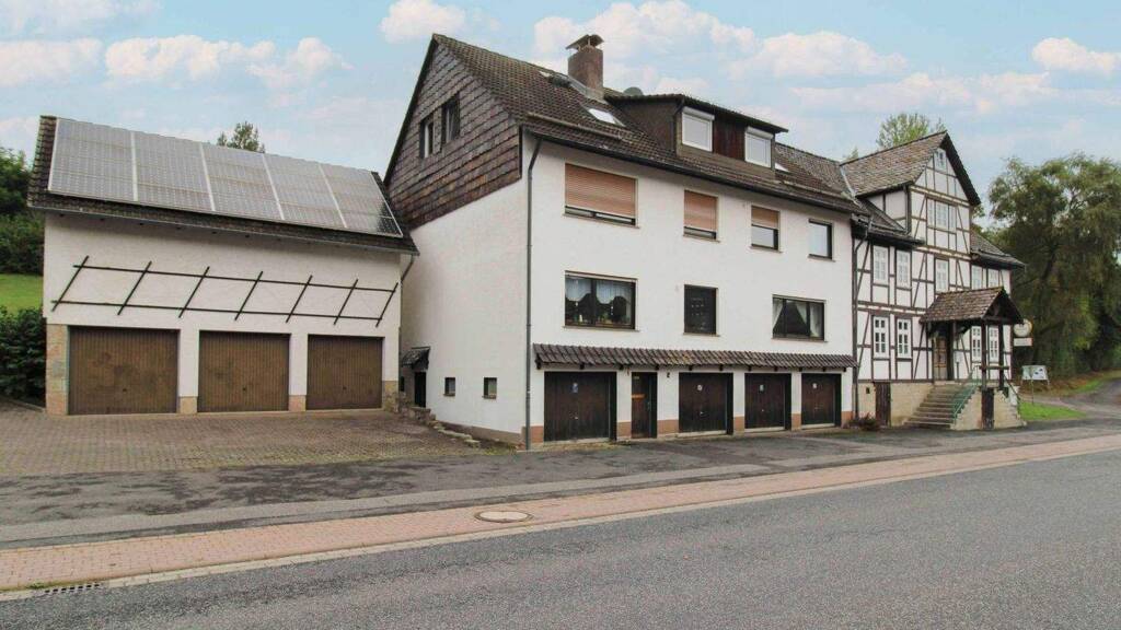 + Mehrfamilienhaus mit 7 Wohn- sowie 1 Gewerbeeinheiten (Gastronomie mit ca. 405 m²) in attraktiver Lage von Großalmerode eignet sich für Kapitalanleger + Ideal für Feriengäste und Monteure geeignet + Hohes Rendite- und Vermietungspotenzial, ggf. Umwandlung von GE in WE möglich + Denkmalgeschützter Teil und Anbau (Energieausweis im Datenraum) + Komfort entsteht durch die vielseitige Ausstattung des Hauses + Der Außenbereich umfasst einen Garten; ein Kellerraum sowie 9 Garagen und 8 Freistellplätze bieten weiteren Komfort