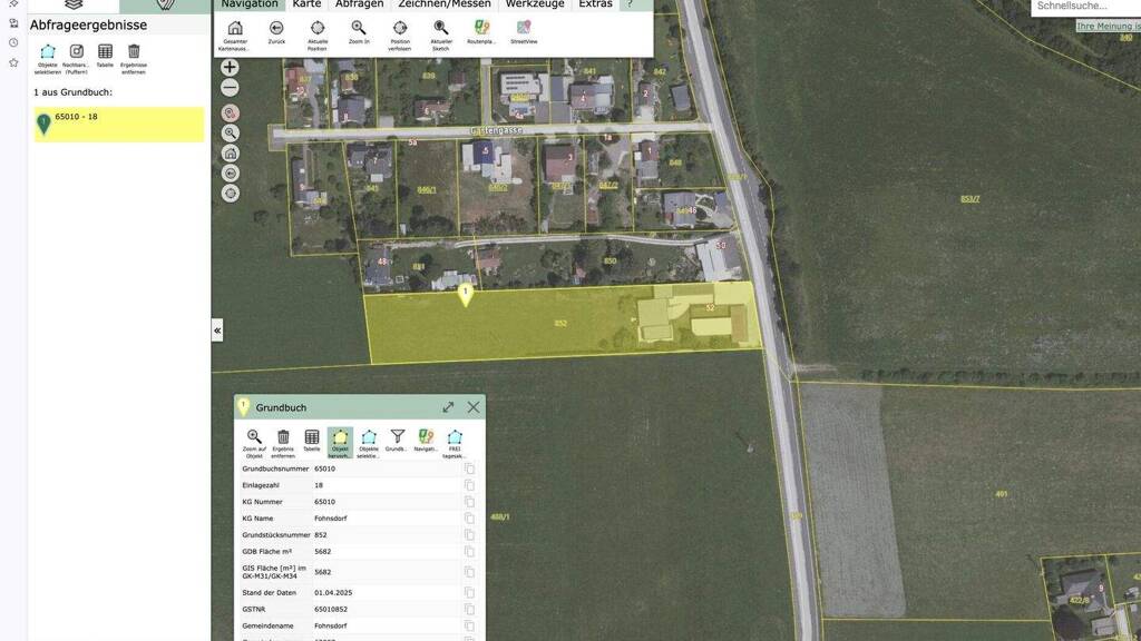 Grundstück gesamt 5.682 m² (ca. 1.508 m² Bauland + ca 4.174 m² LW-Fläche)