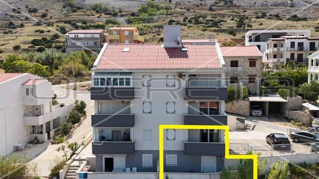 In der Stadt Pag, im Ortsteil Vodice, stehen zwei separate Apartments mit privaten Eingängen zum Verkauf, was eine ausgezeichnete Gelegenheit für diejenigen bietet, die nach einem Familienraum oder einer potenziellen Investition suchen. Die Apartments befinden sich in einer Lage, die einen atemberaubenden Blick auf das Meer, die Stadt Pag, die Bucht und das Velebit-Gebirge bietet.