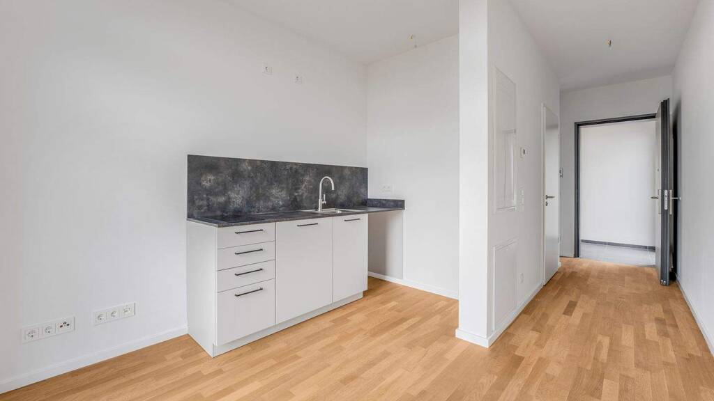 Der kompakte Grundriss ist ideal für alle, die mit leichtem Gepäck durchs Leben gehen. Die moderne Pantryküche mit Induktionsfeld und Kühlschrank ist bereits eingebaut, das stylishe Bad ergänzt das clevere Wohnkonzept.