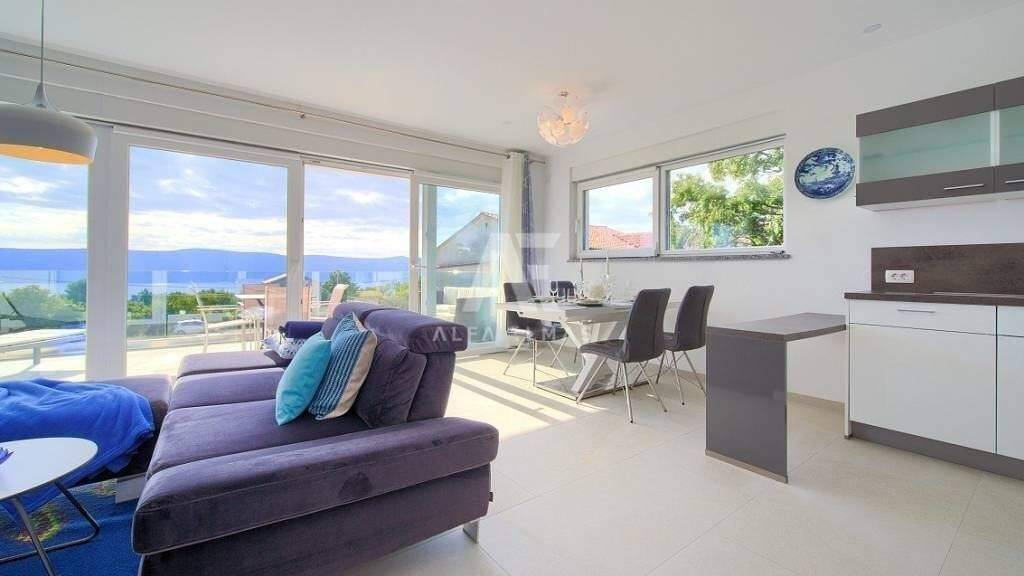 Linardici, Wohnung zum Verkauf im ersten Stock einer modernen Villa mit offenem Meerblick! Die freistehende Villa mit vier Wohnungen wurde 2019 erbaut und besteht aus Keller + Erdgeschoss + Obergeschoss. Das Gebäude befindet sich auf einem Grundstück von 865 m2, davon ca. Der Garten selbst ist 600 m² groß. Die 84,39 m² große Wohnung besteht aus einem Flur, zwei Schlafzimmern, zwei Badezimmern, einer Küche, Esszimmer und einem Wohnzimmer mit Zugang zu einem balkon von 17,82m2. Die Wohnung verfügt im Untergeschoss des Gebäudes über einen Abstellraum von ca. 15m2, ebenfalls mit Fußbodenheizung ausgestattet. Im Keller befindet sich ein Heizraum zur solaren Warmwasserbereitung. Die Wohnung ist komplett möbliert und ausgestattet, die Bodenbeläge sind aus hochwertiger Keramik, PVC-Tischlerei und Klimaanlage, SAT-TV. Im angelegten Garten gibt es zwei Parkplätze. Die Wohnung bietet eine funktionale und komfortable Aufteilung, ideal für den Tourismus, und zeichnet sich durch ihre ruhige Lage und den Meerblick aus!