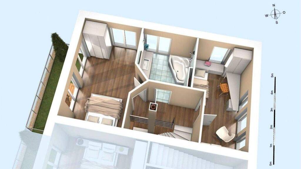- Badezimmer: Bad mit Dusche, Bad mit Fenster