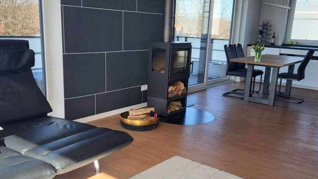 Wohnzimmer mit Kaminofen.
