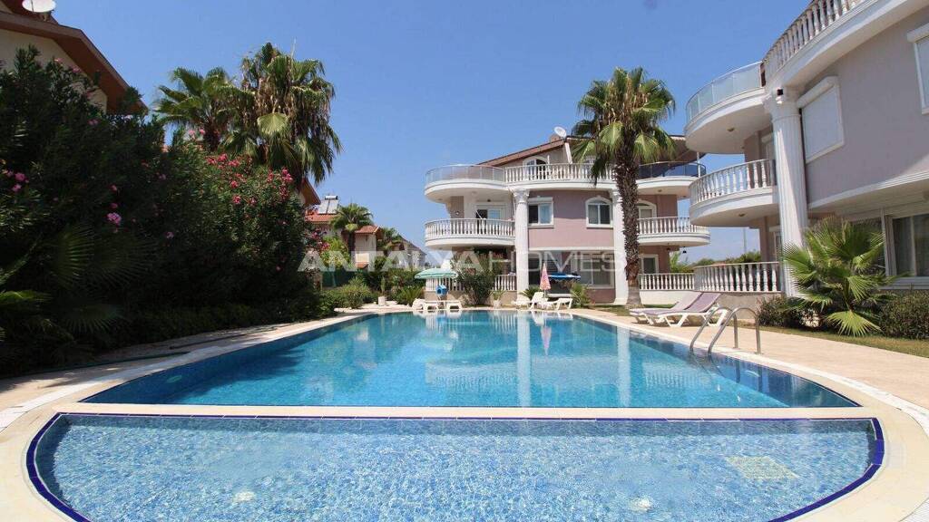Das zum Verkauf stehende Haus in Belek, Antalya, ist Teil einer 1.769 m² großen Anlage mit drei Blöcken. Die Bewohner können einen Gemeinschaftspool, angelegte Gärten und einen Parkplatz nutzen, die sowohl Komfort als auch Bequemlichkeit gewährleisten.