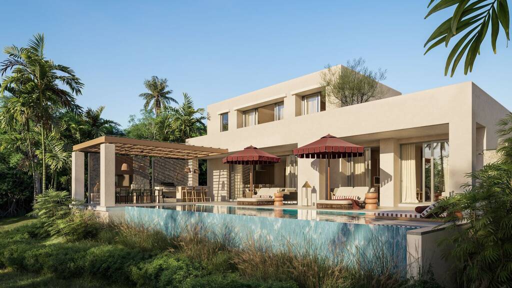 Die Villa verfügt über etwa 252 m² Wohnfläche und wurde so konzipiert, dass sie den mauritischen Indoor-Outdoor-Lebensstil perfekt widerspiegelt. Helle, großzügige Wohnbereiche öffnen sich zu weitläufigen überdachten Terrassen und schaffen eine fließende Verbindung zwischen Innen- und Außenbereich. Das Haus umfasst drei Schlafzimmer mit eigenem Bad, einen großzügigen Wohn- und Essbereich, eine moderne Küche sowie große Fensterfronten, die viel Tageslicht und die angenehmen tropischen Brisen hereinlassen. Im Außenbereich bilden der private Swimmingpool und die Terrasse den idealen Rahmen zum Entspannen oder für gesellige Abende, während man die Ruhe und Schönheit der Umgebung genießt.