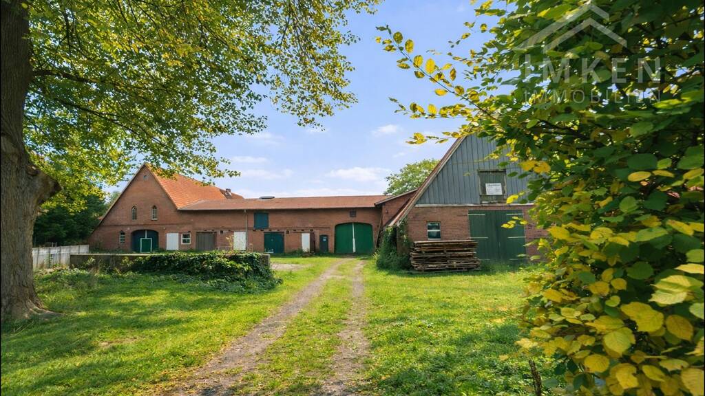Das angebotene Grundstück ist mit einem ehemaligen Resthof bebaut, der aus einem historischen Gebäude mit rotem Ziegelmauerwerk sowie einem später angebauten Wohntrakt besteht. Die vorhandene Bebauung entspricht nicht mehr heutigen Anforderungen und ist zum Abbruch vorgesehen, sodass sich für einen Erwerber attraktive Entwicklungsmöglichkeiten ergeben.