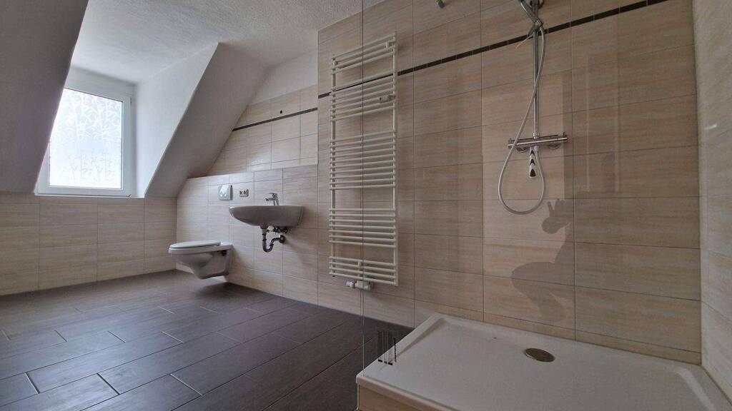 Die Immobilie befindet sich auf einem ca. 1.110 m² großen Areal, das sich im westlichen Stadtbereich von Döbeln befindet. Einkaufsmöglichkeiten, Bildungseinrichtungen, Kino, Theater, Muldentalradwanderweg und Parkanlagen im unmittelbaren Umfeld bieten Ihnen ein angenehmes Wohnambiente. Das um 1995 sanierte/modernisierte Mehrfamilienwohnhaus hat insgesamt 8 Wohnungen. Diese Wohnung ist im Dachgeschoss des Wohnhauses gelegen und über ein geräumiges, lichtoffenes Treppenhaus begehbar. Sie wurde 2016 komplett saniert/modernisiert. Zur Wohnung gehört noch ein Kellerraum. Der Hinterhof des Grundstückes kann von den Mietern genutzt werden.