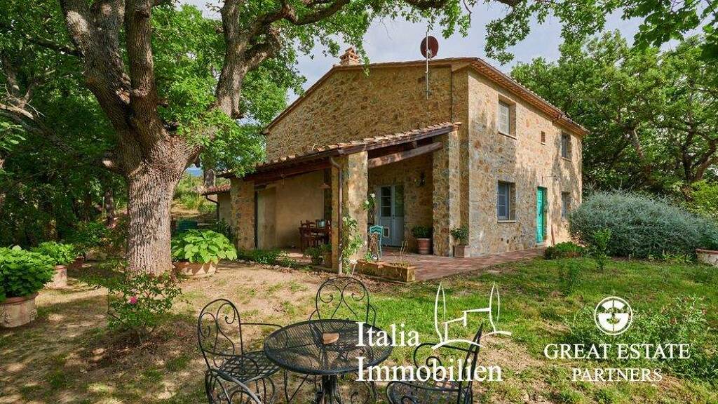 Bei dem Objekt handelt es sich um ein typisches toskanisches Bauernhaus, das um 2013 renoviert und mit verschiedenen wertvollen architektonischen Elementen wie der Treppe und dem Kamin aus Travertin, den Badezimmern aus Vietri-Keramik und dem Parkett aus französischer Eiche verschönert wurde.