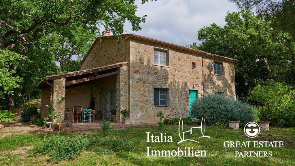 Dieses charmante Anwesen in Seggiano, umgeben von der toskanischen Landschaft und mit Blick auf Sant'Angelo in Colle, erstreckt sich über zwei Ebenen und umfasst etwa 230 Quadratmeter. Das Erdgeschoss verfügt über eine bewohnbare Veranda, die sich im Sommer ideal für Mittag- und Abendessen eignet. Auf dieser Ebene befindet sich auch der gesamte Wohnbereich mit einem großen Wohnzimmer, einer Küche, einem Esszimmer, einem Badezimmer und drei kleinen Räumen, darunter eine Waschküche, ein Abstellraum und ein Hauswirtschaftsraum. Im ersten Stock befindet sich der Schlafbereich mit drei Schlafzimmern und drei Badezimmern, zwei davon privat. Im Außenbereich gibt es zusätzliche Räumlichkeiten: einen Anbau von etwa 40 Quadratmetern, der erweitert werden kann. Ein Renovierungsprojekt wurde bereits eingereicht und genehmigt. Es besteht auch die Möglichkeit, einen Swimmingpool zu bauen. Das Grundstück ist etwa 3,5 Hektar groß und besteht hauptsächlich aus dem 2.390 Quadratmeter großen Park, einem herrlichen Olivenhain mit 100 Bäumen der wertvollen wilden Seggiano-Olive und Wald. Bitte beachten Sie, dass sich der Olivenhain und der Wald nicht direkt neben dem Bauernhaus befinden, sondern in geringer Entfernung.