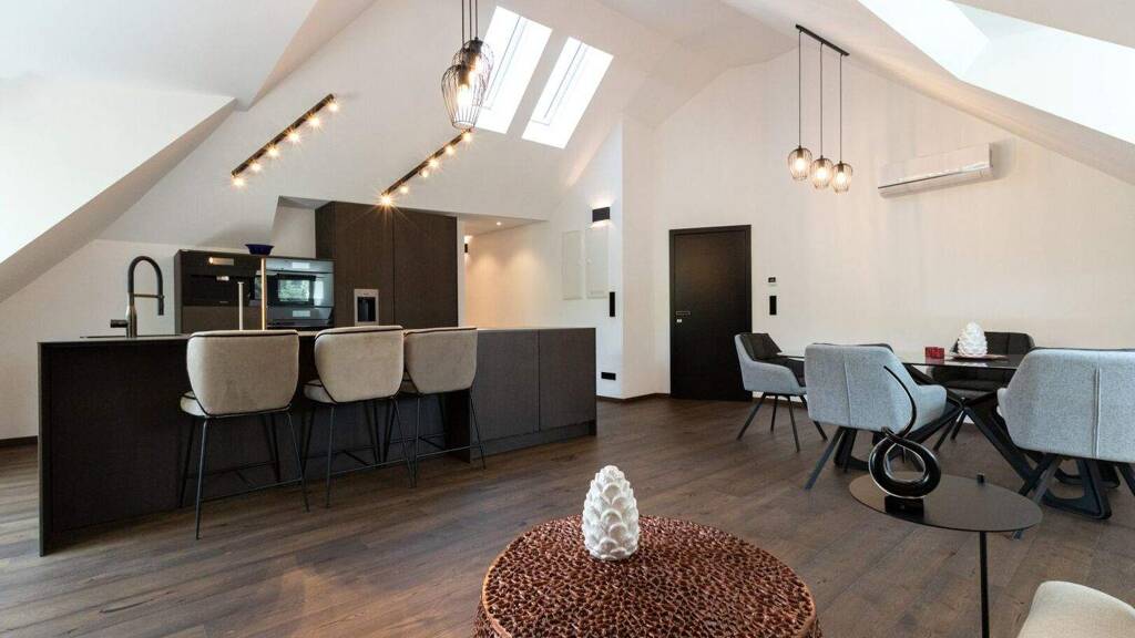 Die angebotene Wohnung begeistert durch großzügiges Loft-Feeling, eine Designküche mit Kochinsel sowie eine Sonnenterrasse mit Blick auf Kirche und Weinberge sowie ein Pool - ein Ort zum Durchatmen und Genießen.
