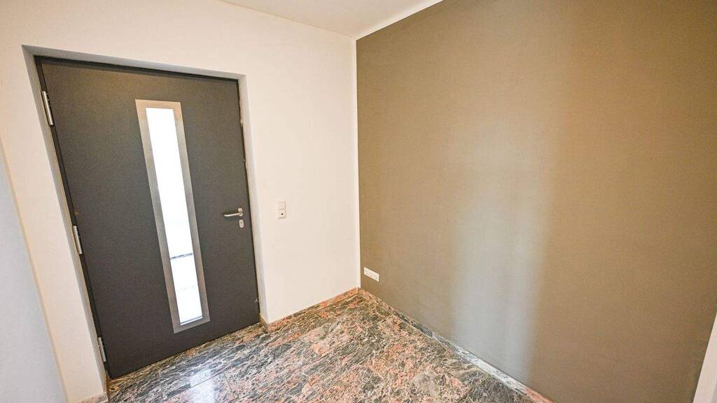 Das helle, einladende Wohnzimmer ermöglicht einen direkten Zugang zur sonnigen Terrasse, die ideal für entspannte Stunden im Freien geeignet ist. Ein stilvolles Badezimmer sowie ein zusätzliches Gäste-WC runden das Raumangebot ab und bieten den gewünschten Komfort für Ihren Alltag.