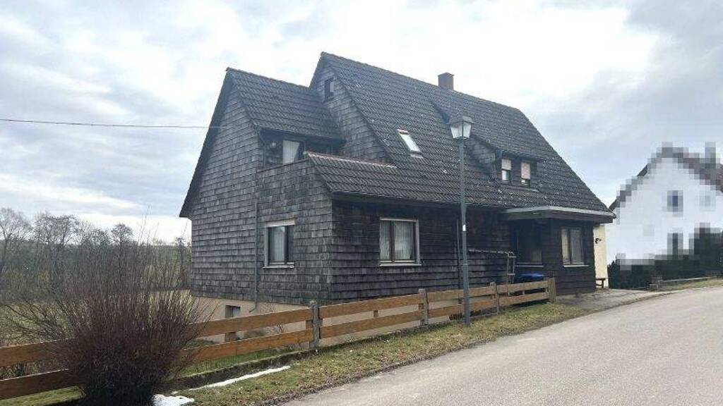Das ursprüngliche Baujahr des Hauses liegt ca. im Jahr 1950 (Massivbauweise). Ca. 1983 wurde das Gebäude durch einen Anbau in Holzständerbauweise erweitert. Der Anbau ist an zwei Außenseiten gedämmt und mit einer Holzschindelverkleidung versehen. Holzfenster mit Isolierverglasung und Rollläden. Gesamtzustand entspricht überwiegend dem Charme und Stil der 1980er Jahre. Die Raumhöhen sind angenehm und vermitteln ein großzügiges Wohngefühl. Ein geschützter Vorbau führt in das zentrale Treppenhaus, das Zugang zum Erdgeschoss, Dachgeschoss sowie zum Keller bietet. Aufgrund dessen kann bei Bedarf das Wohnhaus auch in zwei kleinere Wohnungen aufgeteilt werden.