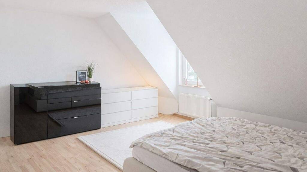 Das Schlafzimmer bietet genĂĽgend Platz fĂĽr ein groĂźes Bett und Stauraum. Das Badezimmer ist hochwertig ausgestattet und verfĂĽgt ĂĽber FuĂźbodenheizung, Dusche sowie eine Badewanne - ideal fĂĽr unterschiedliche BedĂĽrfnisse im Alltag.