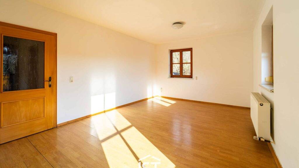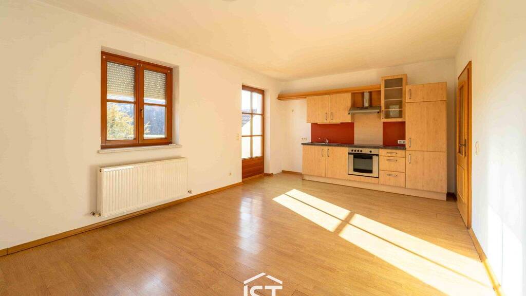 • Rund 60 m² WNFl. im 1. Obergeschoss eines Mehrparteienhauses • Vorraum, Wohn-/Essbereich mit Einbauküchenblock, Schlafzimmer, Büro, Badezimmer mit Wanne • Zwei gemütliche Balkone für entspannte Stunden • Eigener Abstellraum im Keller • Beheizung mit Öl-Zentralheizung und Heizkörpern • PKW-Stellplatz direkt vorm Haus • Optional Pferdehaltung möglich • Jederzeit verfügbar!