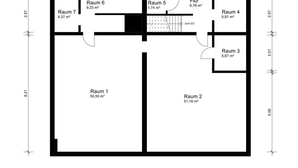 + Nebenräume im Keller 3-7 - 1,74m² bus 9,33m²