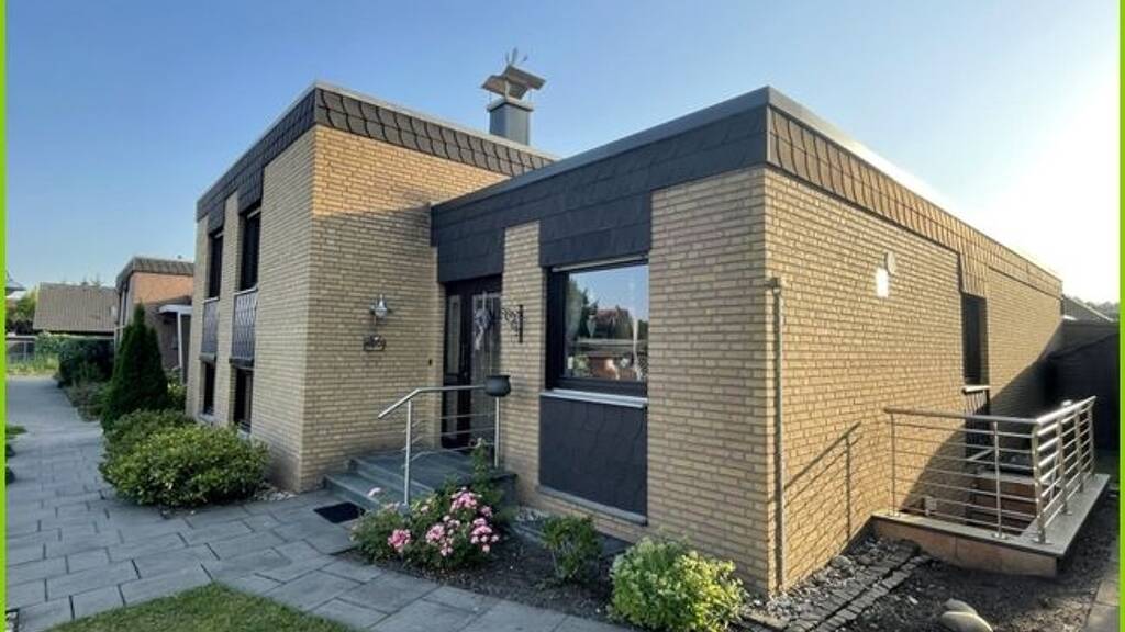 Dieser charmante, voll verklinkerte Einfamilienhausbungalow aus dem Baujahr 1977 bietet alles, was das Herz begehrt. Auf einem Grundstück von insgesamt ca. 389 m² (inkl. Zuwegungsanteil und Garagengrundstück) genießen Sie mit dieser Immobilie eine gepflegte und massiv gebaute Wohnumgebung, die sich ideal für Paare oder junge Familien eignet. Das voll unterkellerte Haus überzeugt mit einer Wohnfläche von ca.107 m² und ca.56 m² Nutzfläche, verteilt auf 8 einladende Zimmer. Sie finden hier drei gemütliche Schlafzimmer im erhöhten Staffelgeschoss, die ausreichend Platz für Ihre Familie bieten. Zwei modernisierte Badezimmer, eines im Erdgeschoss, sowie ein Weiteres im Kellergeschoss, sorgen für den nötigen Komfort....
