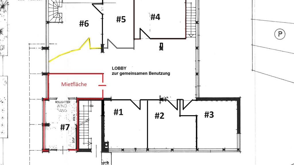 Zu der angegebenen Gemeinschaftsfläche gehören der Windfang, WC Damen und Herren und eine Lobby, in welcher Sie Ihre Kunden standesgemäß empfangen können.