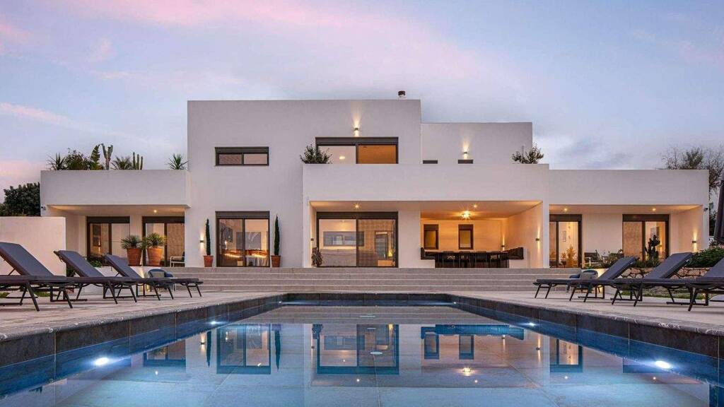 Die Hauptvilla verteilt sich auf zwei Ebenen und bietet insgesamt 12 geräumige Schlafzimmer sowie 9 hochwertige Badezimmer. Im Untergeschoss befinden sich vier elegante Doppelschlafzimmer mit Kingsize-Betten und maßgeschneiderten, importierten italienischen Einbauschränken. Die Badezimmer sind mit modernsten Grohe "Supersteel" Armaturen ausgestattet, inklusive eines Spa-Bereichs mit Whirlpool, estnischer Sauna, Dampfbad (Hammam) und entspannendem Loungebereich. Fitnessbegeisterte Einwohner profitieren vom vorhandenen Fitnessraum, während der schallisolierte Kinoraum mit 120-Zoll-Leinwand und Surround-Sound zudem für Unterhaltung auf höchstem Niveau sorgt. Zusätzlich lädt ein Spiel-, Yoga- und Barraum mit Billardtisch und entsprechender Ausstattung zum Relaxen und geselligen Momenten ein. Im Erdgeschoss beeindruckt ein großzügiger, offener Wohnbereich mit einer edlen neolithischen Küche von italienischen Designern, komplettiert durch hochmoderne Miele-Geräte sowie einen großen Essbereich. Zwei Doppelflügeltüren führen zu einer vollständig überdachten und wetterfesten Freiluft-Esszone für bis zu 32 Personen - perfekt für exklusive Zusammenkünfte.