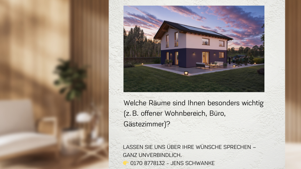 Sonstiges Vereinbare einen persönlichen Beratungstermin, um über Deinen Haustraum und das angebotene Objekt zu sprechen.