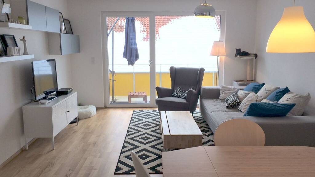 Beim Betreten der Wohnung gelangen Sie zunächst in den einladenden Eingangsbereich. Von hier aus kommen Sie in den großzügigen, offenen Wohn-/Ess-/Küchen-Bereich. Die moderne Küche schafft eine angenehme Atmosphäre für gemeinsame Mahlzeiten und gesellige Abende. Die Belichtung aus zwei Seiten sorgt für ein freundliches Wohnambiente. Das gemütliche Schlafzimmer bietet ausreichend Platz für ein großes Bett und Schränke. Ein weiteres Zimmer kann flexibel als Kinderzimmer, Gästezimmer oder Büro genutzt werden, je nach Ihren individuellen Bedürfnissen.