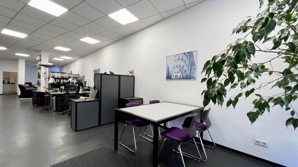 Die Gewerbefläche ist modern gestaltet, loftähnlich geschnitten und kann optional noch in einzelne Arbeitsbereiche eingeteilt werden. Der Zugang zur Fläche ist stufenlos im Erdgeschoss, verfügt über eine Glaseingangstür sowie eine Fensterfront, die ideal für Ihre Außenwerbung geeignet ist.