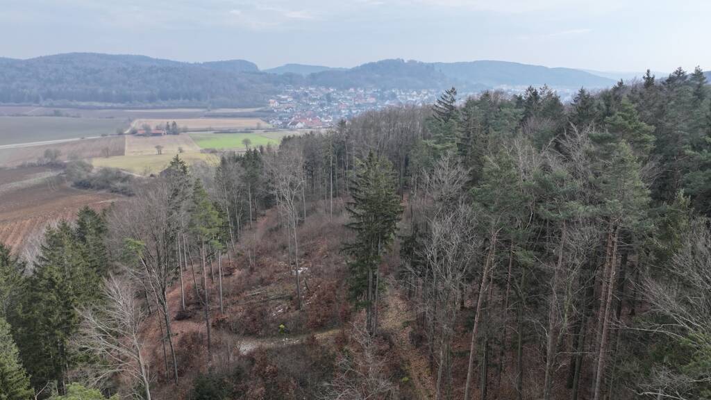 Die Waldfläche hat nur einen geringen Buchen und Fichten Bestand.