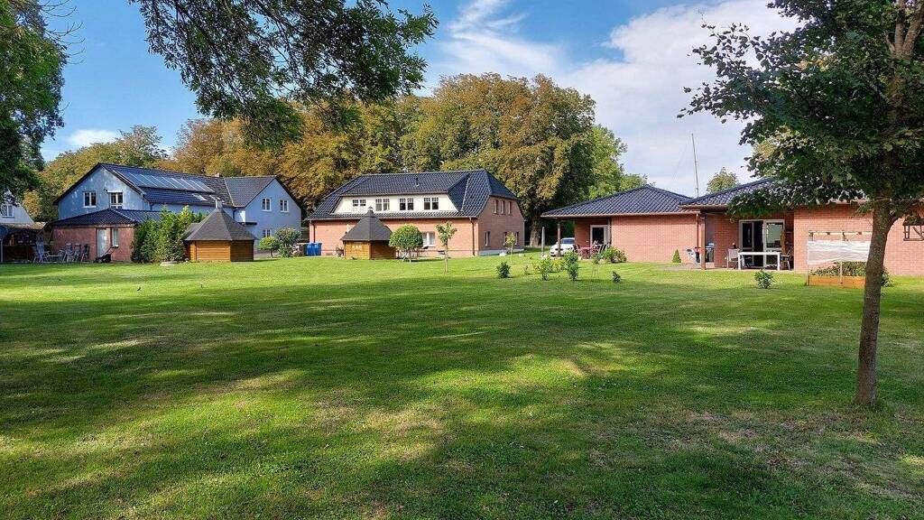 Diese in den Jahren 2004-2007 vollständig modernisierte Ferienanlage, bestehend aus zwei großen Häusern mit jeweils ca.200m² bzw. ca.300m² Wohn-/Nutzfläche sowie zwei Bungalows mit je 3 Zimmern und ca.60m² Wohnfläche befindet sich auf der malerischen Insel Rügen im OT Schaprode und damit im Nordwesten der Insel, nahe des Meeres/Boddens und der Insel Hiddensee.